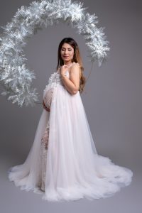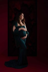 Our professional studio is equipped with everything needed for beautiful maternity portraits, including professional lighting, backgrounds, and our extensive collection of maternity dresses.