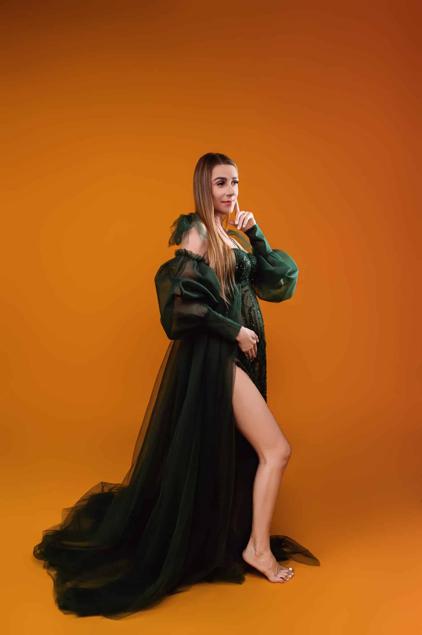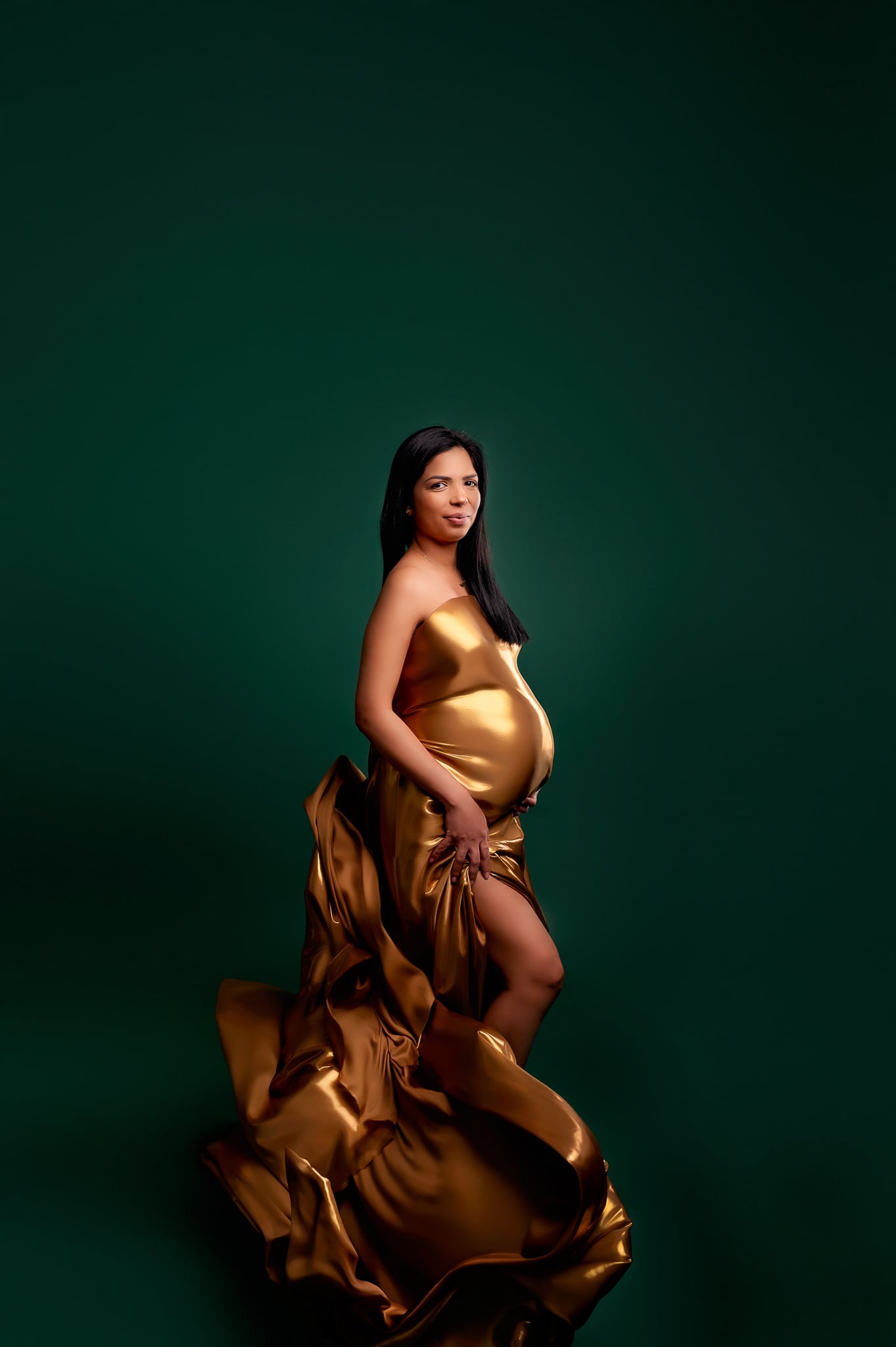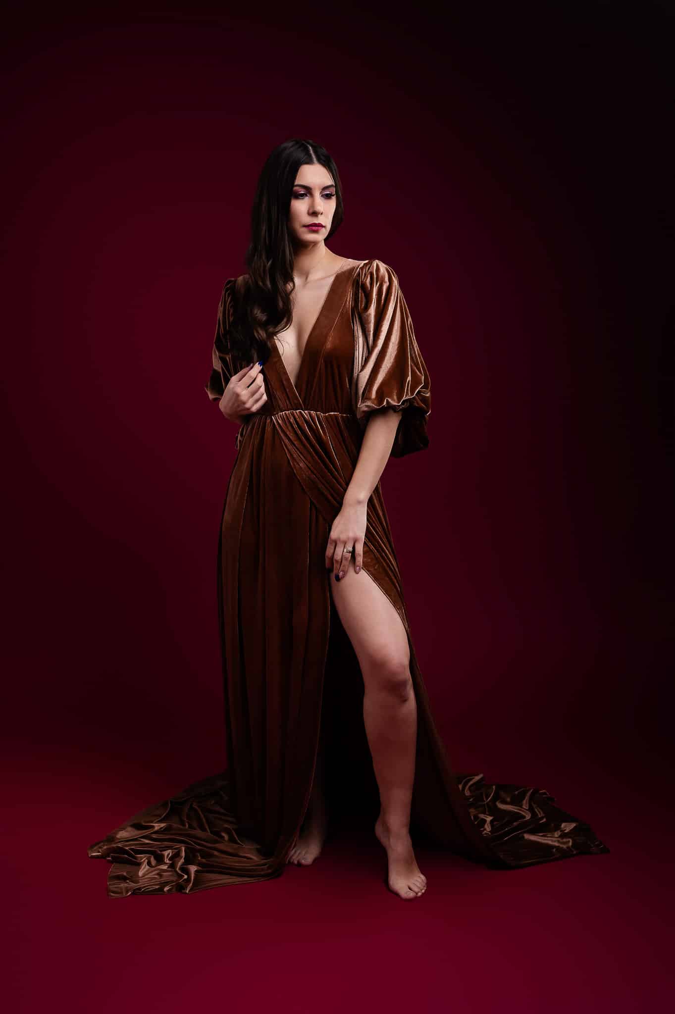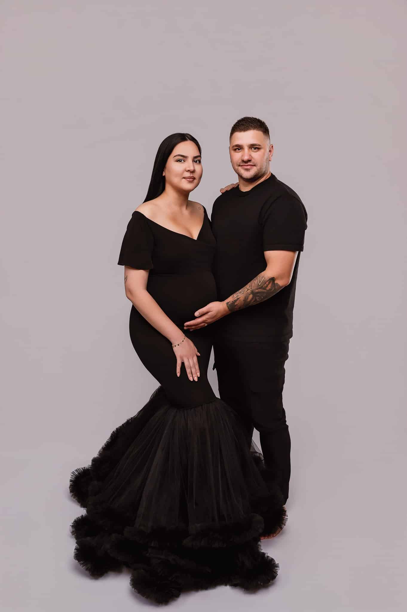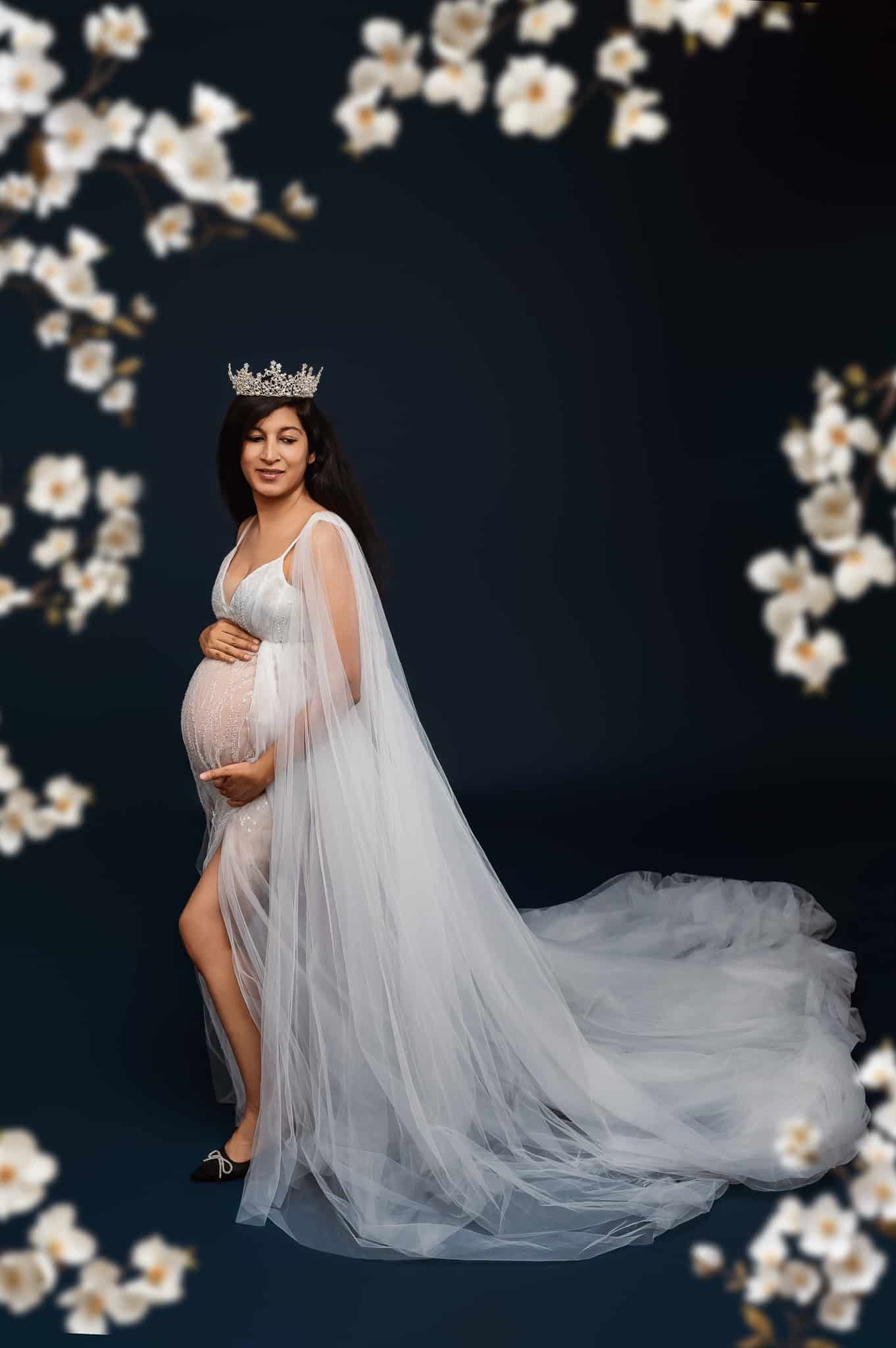 Our professional studio is equipped with everything needed for beautiful maternity portraits, including professional lighting, backgrounds, and our extensive collection of maternity dresses.