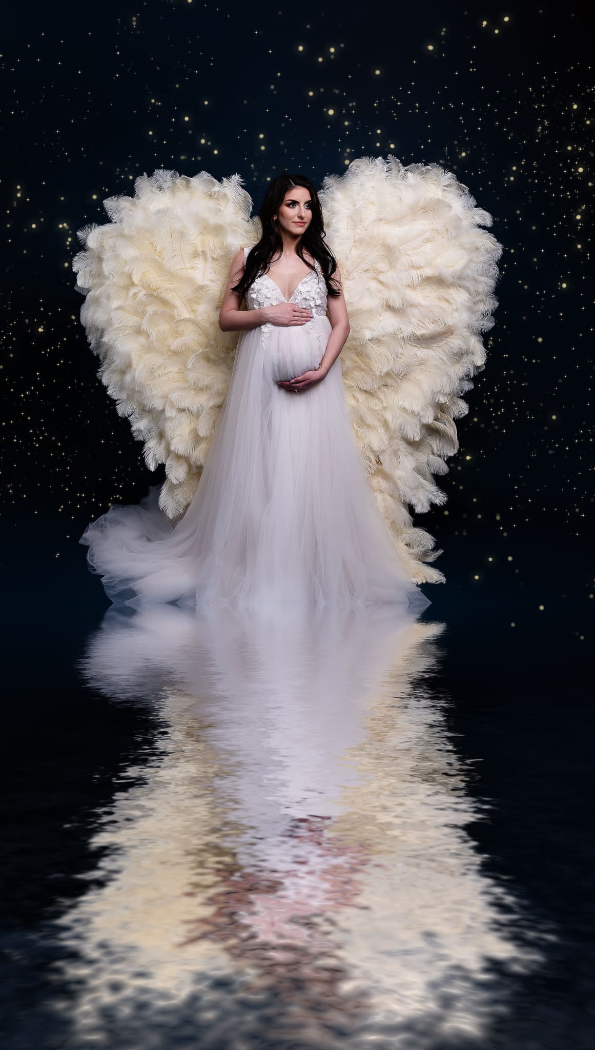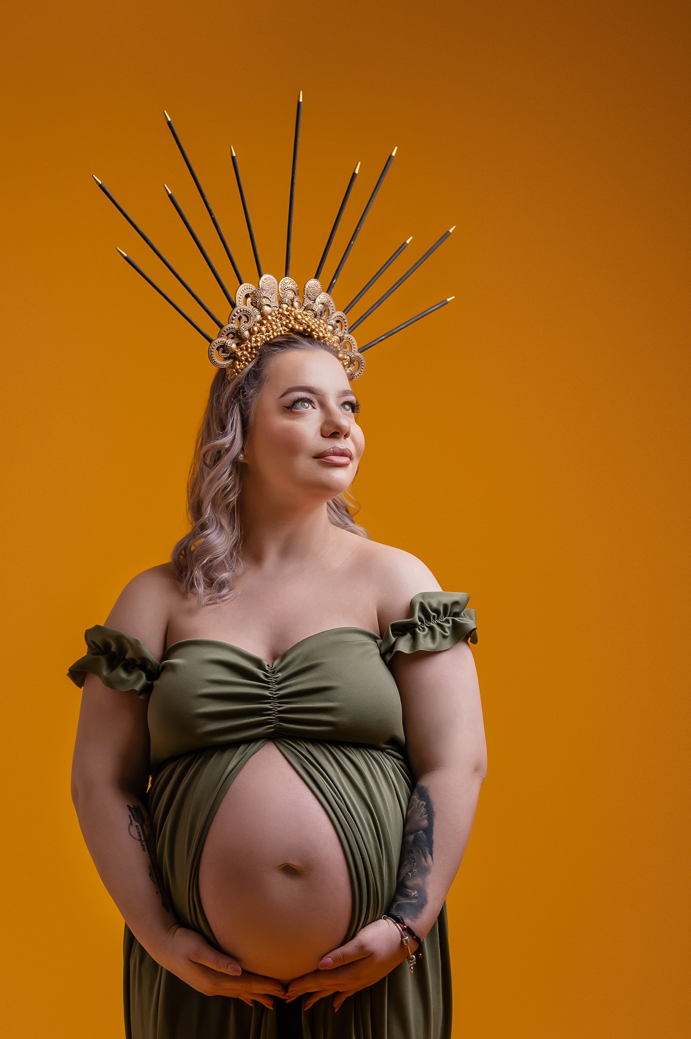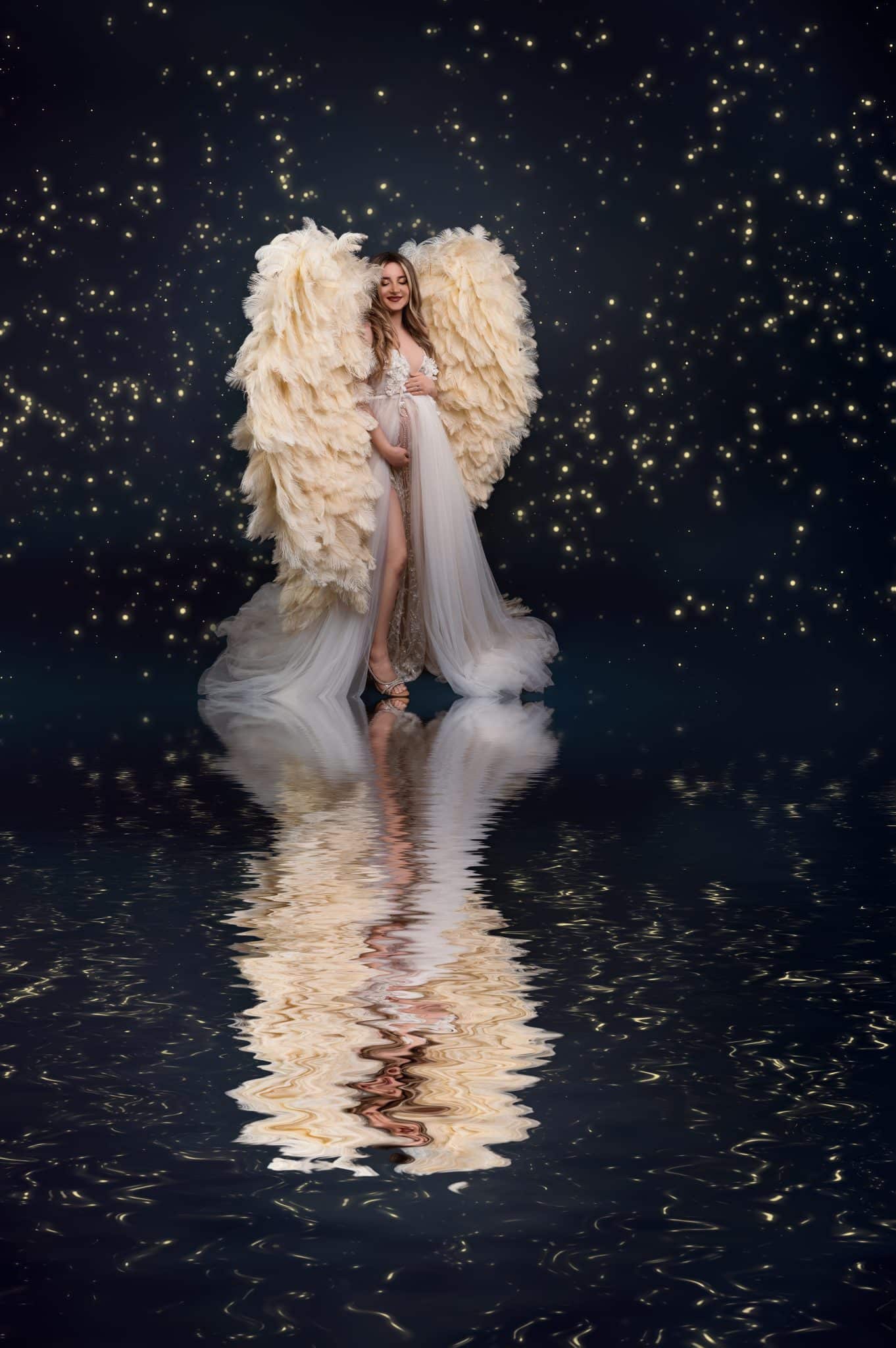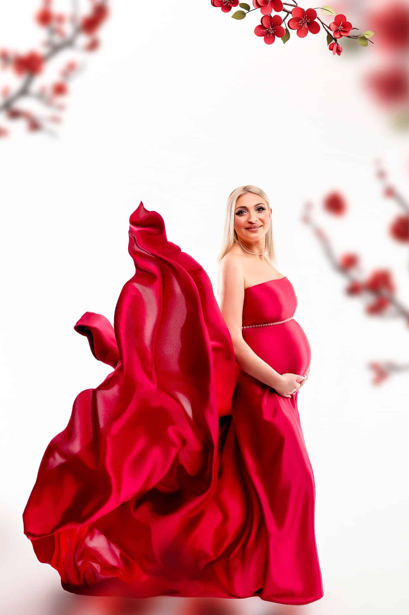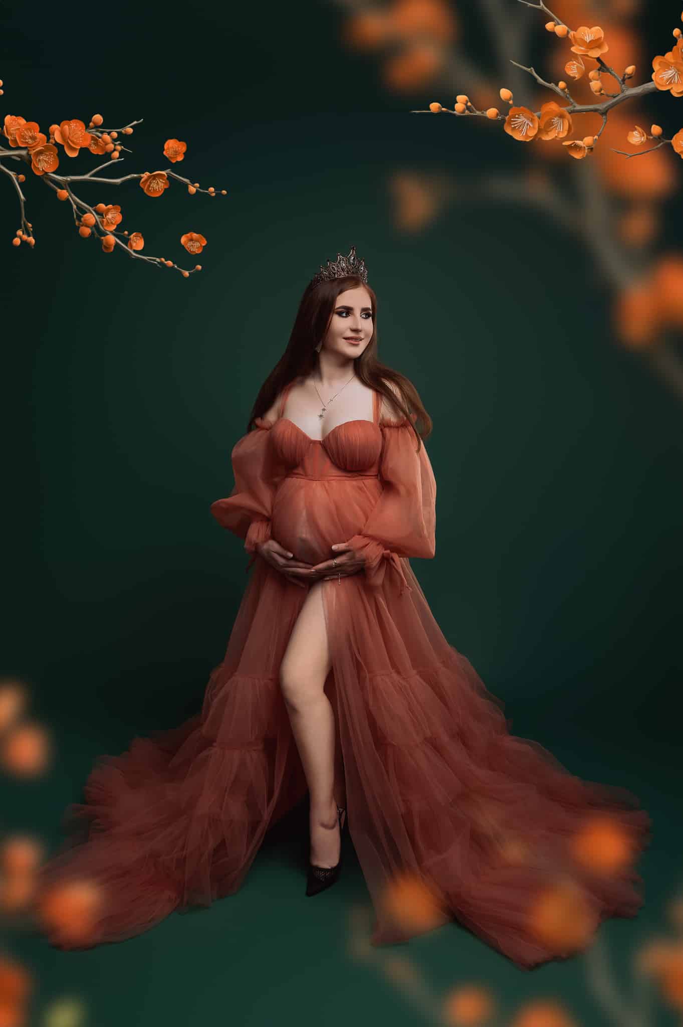 Our professional studio is equipped with everything needed for beautiful maternity portraits, including professional lighting, backgrounds, and our extensive collection of maternity dresses.