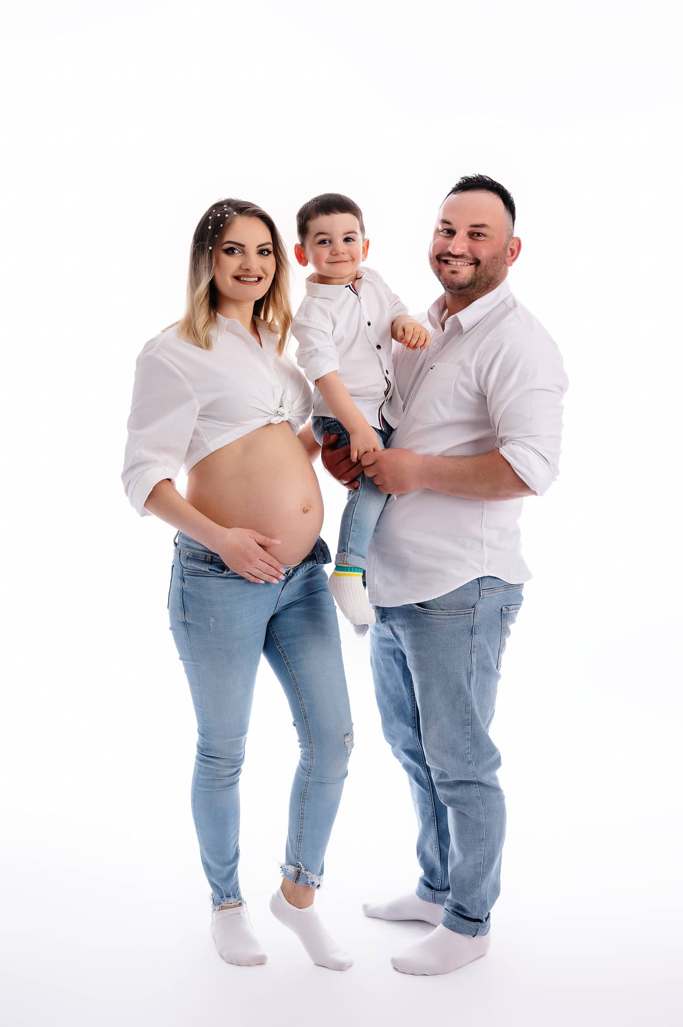 Only parents and children can attend the maternity photoshoot at our Milton Keynes studio. This policy ensures a comfortable, focused environment without overcrowding.