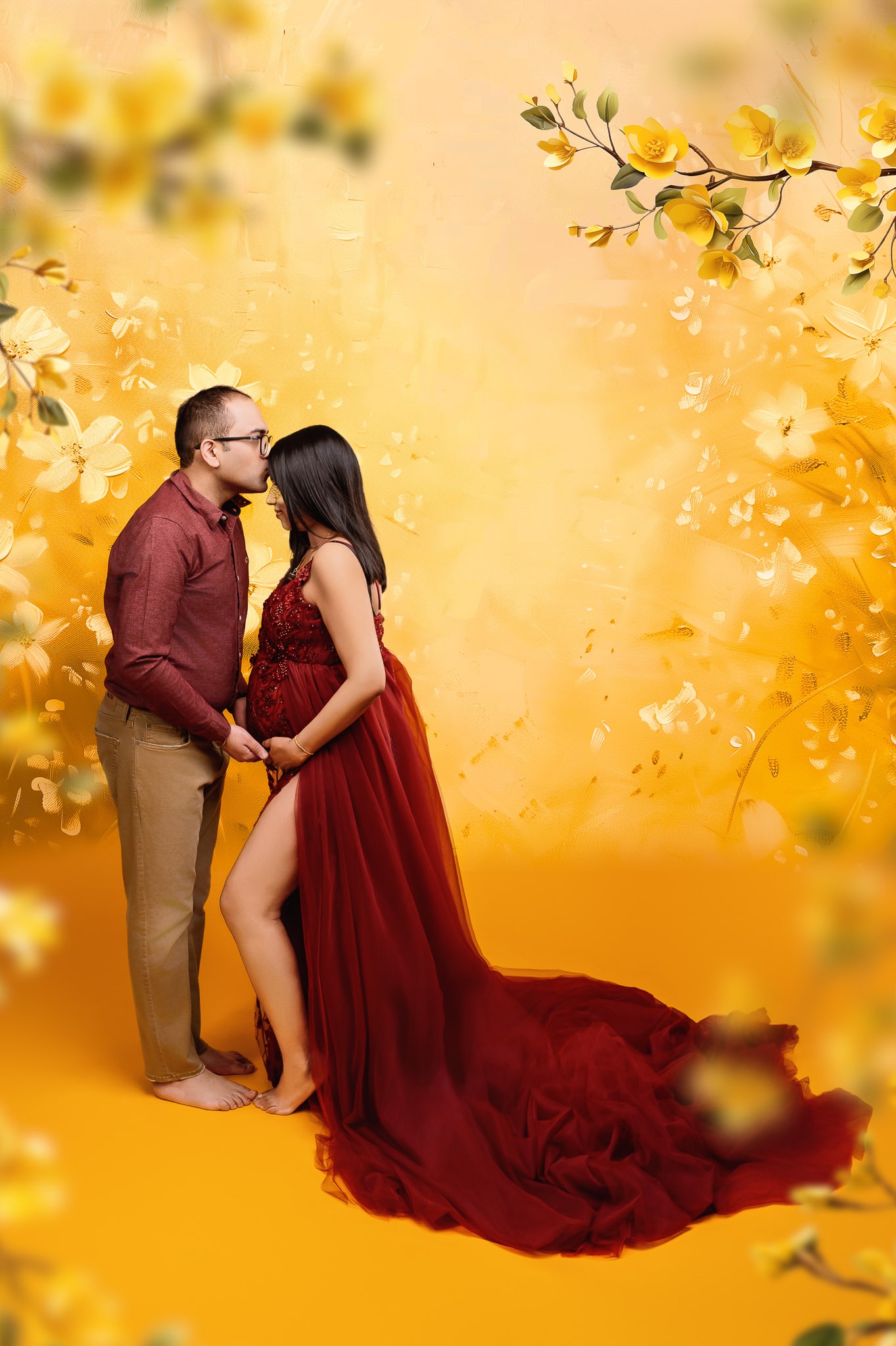 Studio-Exclusive Benefits: Our collection of over 35 designer maternity dresses is available exclusively for studio sessions. This extensive wardrobe allows you to achieve professional, magazine-quality looks without the expense of purchasing or renting maternity gowns. For outdoor maternity photography sessions, clients need to provide their own outfits, as our studio dress collection cannot be used outside the studio environment.
